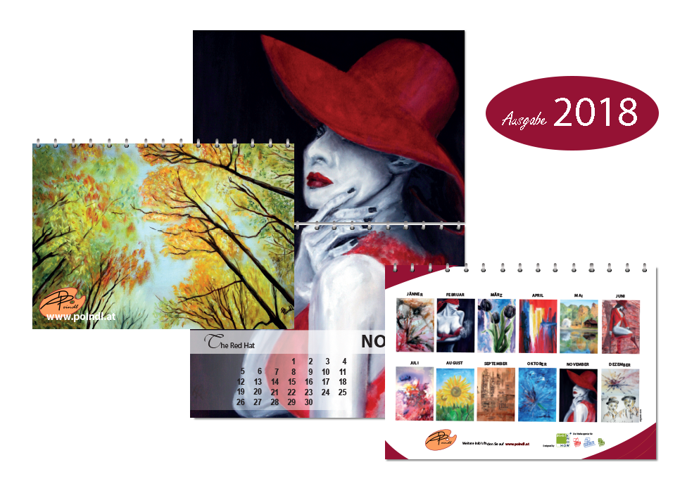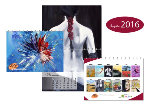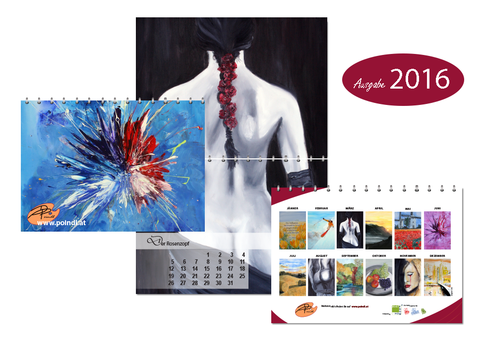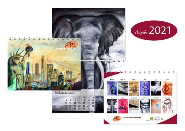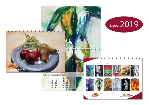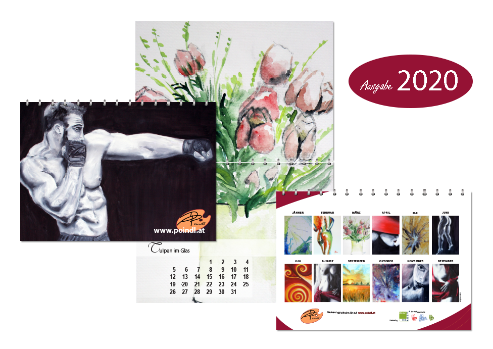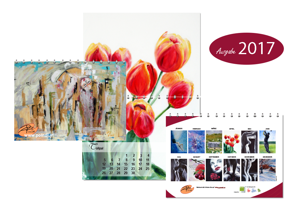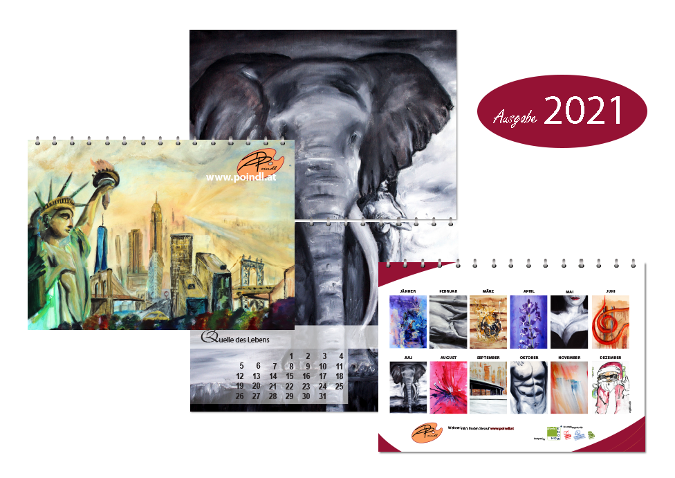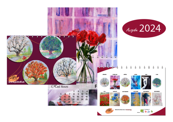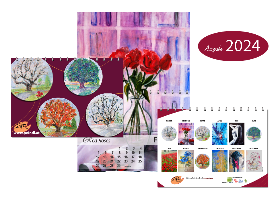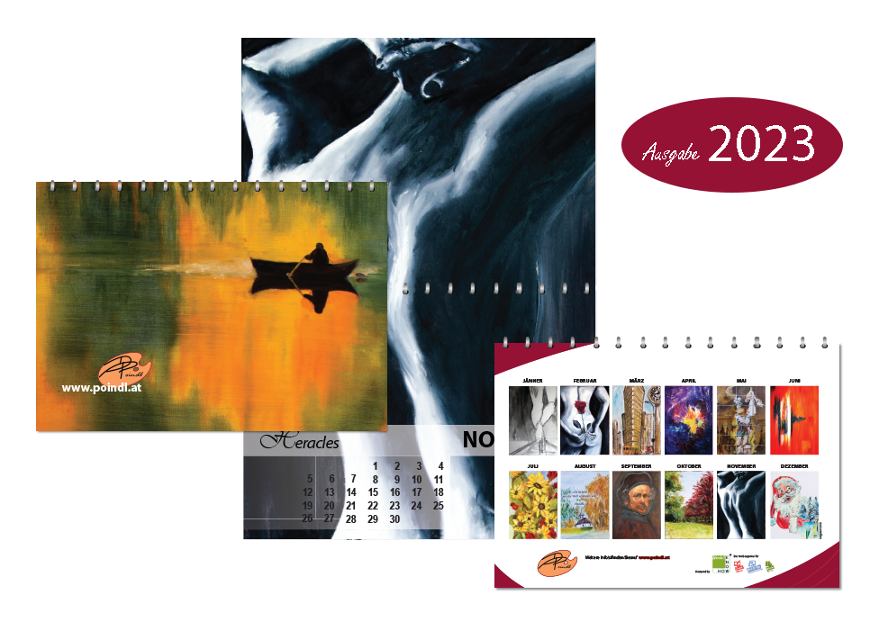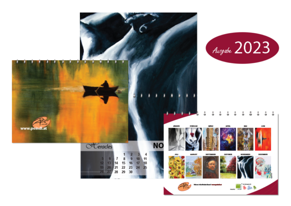 Entdecken Sie Monat für Monat die Vielfalt der Kunstwerke von Dieter Thomas Poindl, denn seine exklusiven Kalender präsentieren Ihnen jeden Monat ein neues, bezauberndes Gemälde. Diese hochwertigen Kalender sind nicht nur nützliche Zeitmesser, sondern auch wahre Kunstwerke, die Ihr Zuhause mit kreativer Energie erfüllen.